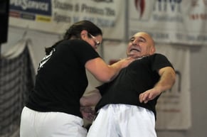 Prevede un programma di tecniche che possono essere sfruttate in più situazioni rimanendo nell’alveo della Legittima Difesa secondo le norme vigenti della Legge Italiana. L’allenamento si svolge con una prima parte basata sul riscaldamento muscolare attraverso una serie di movimenti che puntano a migliorare la resistenza, la forza e la coordinazione motoria ed in una seconda fase dove si imparano specificatamente le tecniche di difesa che sfruttano la forza dell’aggressore per controllarlo e/o renderlo inoffensivo.