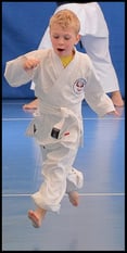 Tuta da ginnastica e piedi scalzi vanno bene all’inizio, poi grandi e piccoli indosseranno con orgoglio la divisa bianca (karate-gi) composta di pantaloni, casacca e cintura.
